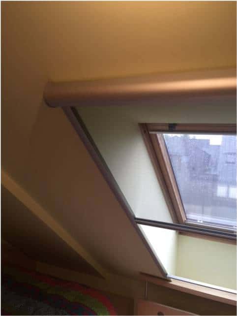 - rolety na okna dachowe zaciemniające – montaż wewnętrzny. Roleta z tkaniny blokującej światło. Prowadzona w bocznych prowadnicach. Umożliwia pełne zaciemnienie pomieszczenia. Najczęściej wybierana do sypialni i pokojów dziecięcych. Nie zatrzymuje ciepła przed szybą.